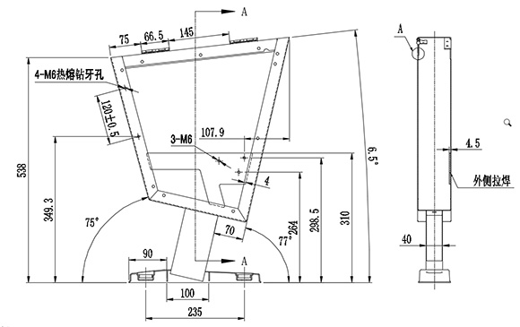 扶手和寫字板向上傾斜6.5度,需提供五金站腳小樣一個。