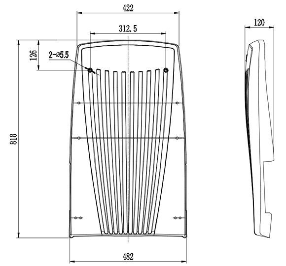 10.座椅站腳采用優(yōu)質(zhì)1.8mm厚碳素冷軋鋼經(jīng)模具沖壓、焊接、打磨、除油除銹后靜電噴涂而成,堅固耐用,防銹耐腐蝕。左右兩側(cè)配有側(cè)板并面覆麻絨布,美觀且防撞。站腳尺寸為:長度為586±5 mm,寬度為427±5mm,高度為80±5 mm。